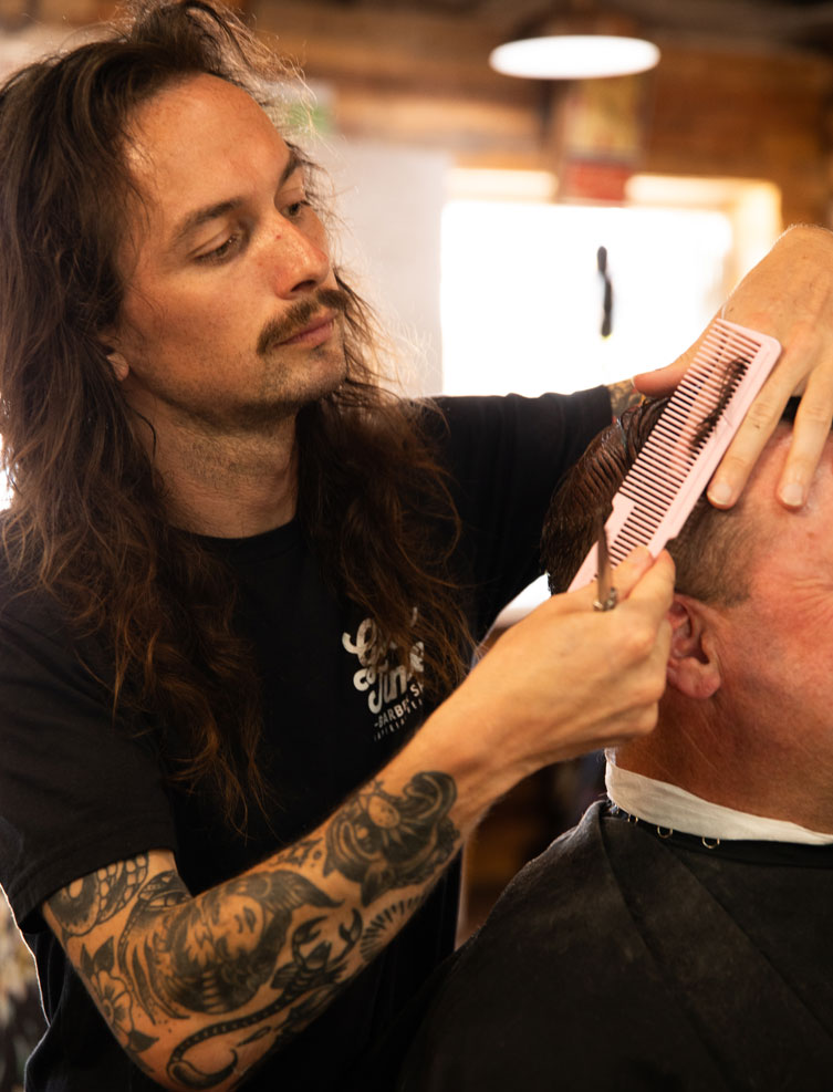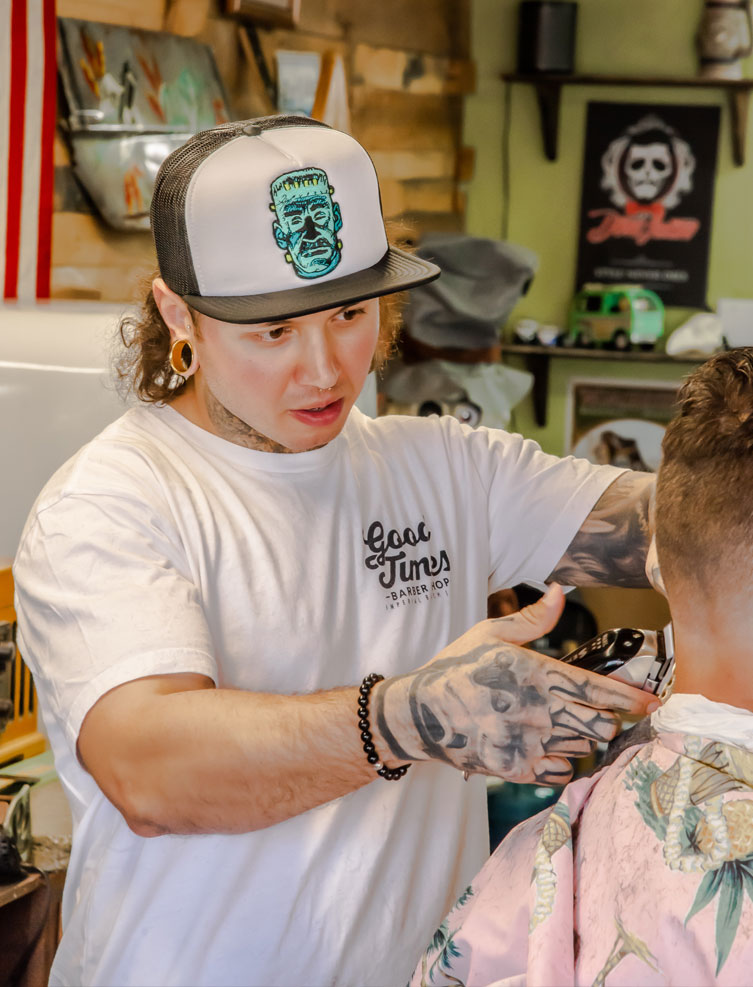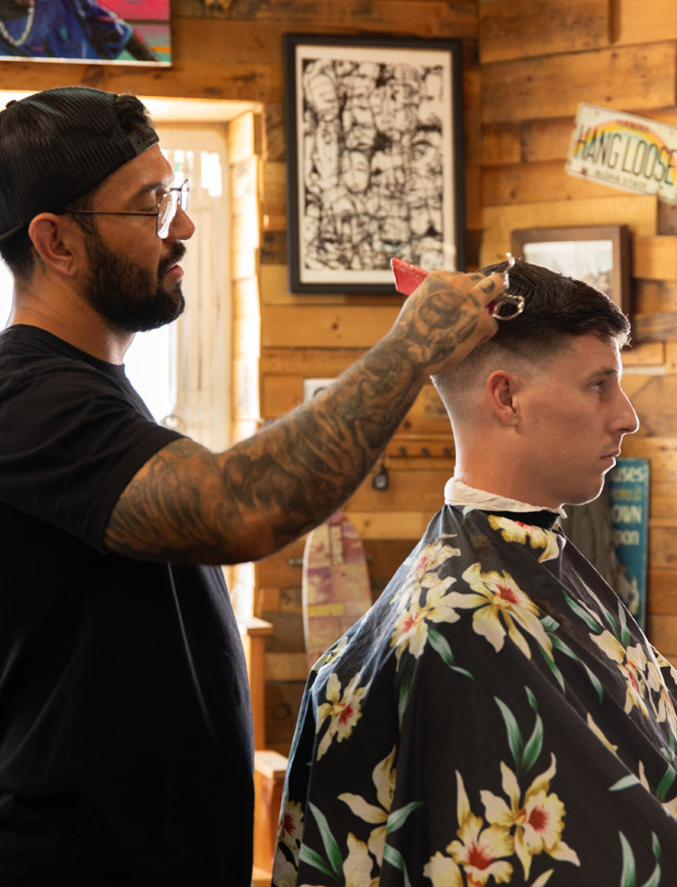 The crew specializes in classic and modern haircuts with straight razor shaves.